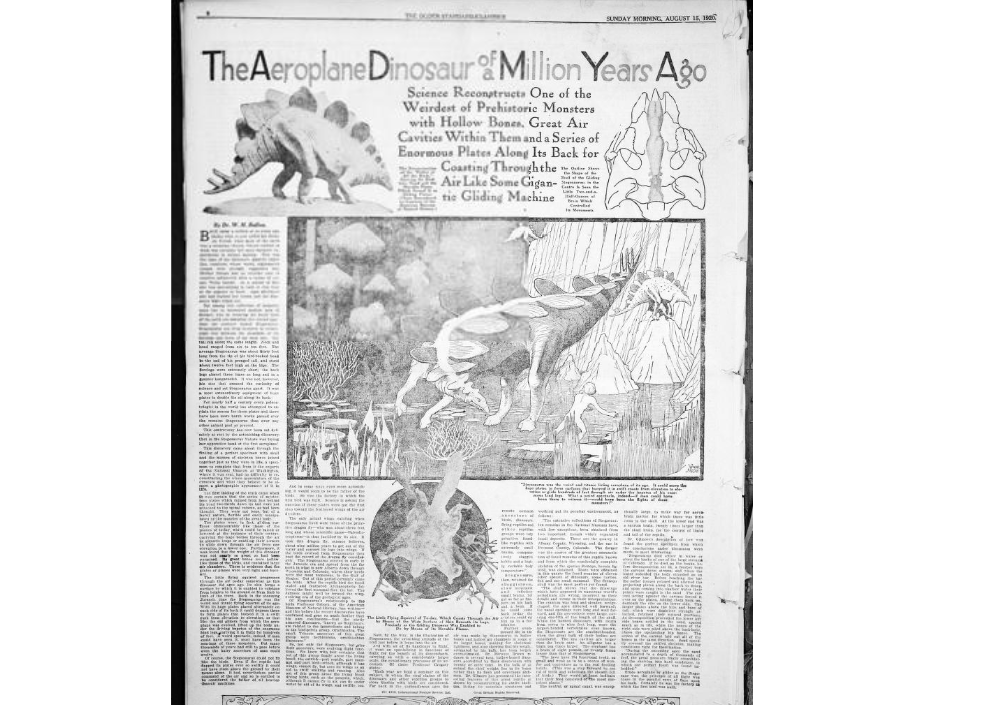 Here we see an old newspaper clipping of a gliding stegosaurus. Interesting, but probably inaccurate.